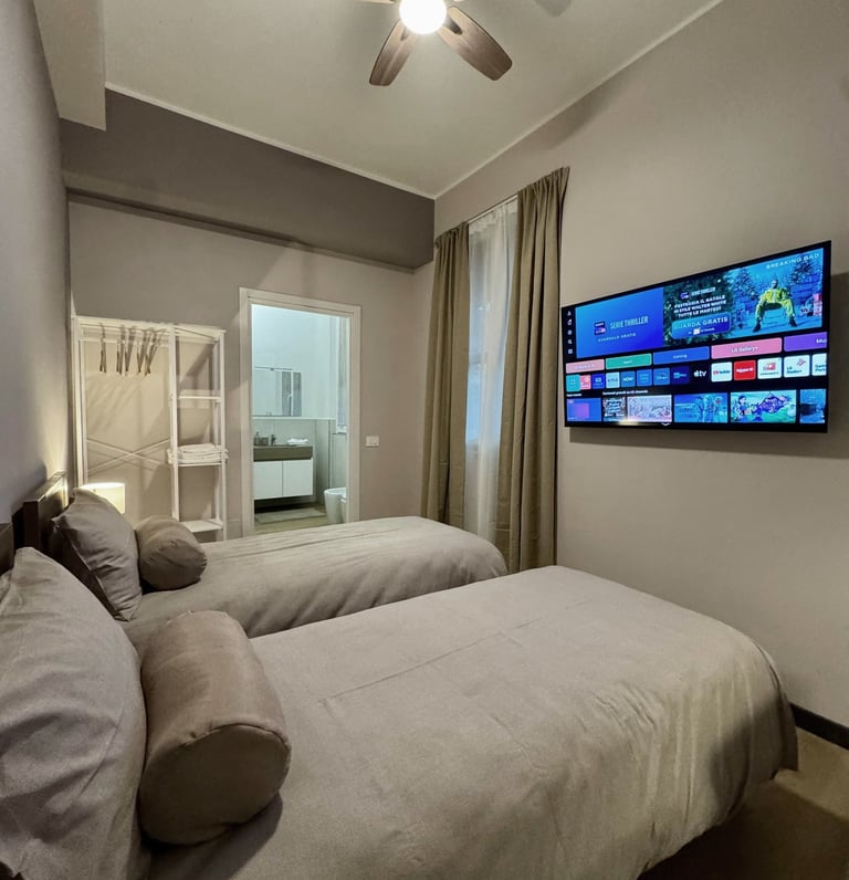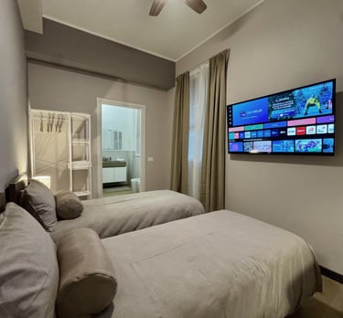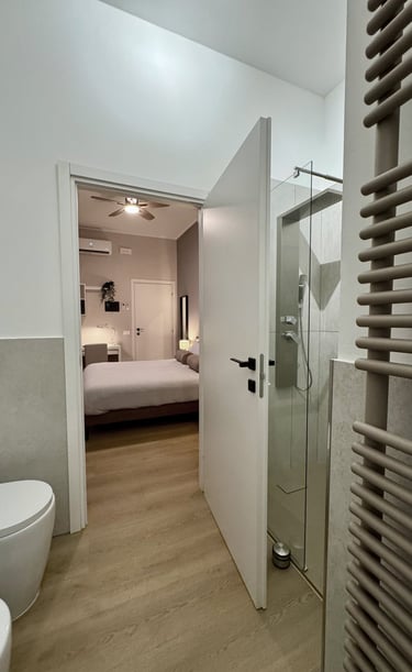Nel nuovissimo B&B Del Mercante In Fiera troverete 3 eleganti camere con aria condizionata ed un pratico e riservato parcheggio privato con cancello automatico, ogni camera dispone anche di un televisore da ben 55" di ultimissima generazione oltre a WiFi gratuito, un fornito frigobar, un forno micro-onde, una macchina del caffè con cialde ed un fantastico bagno privato con doccia.