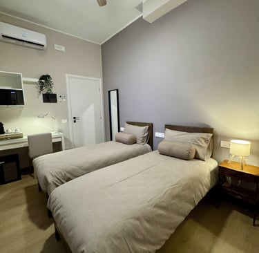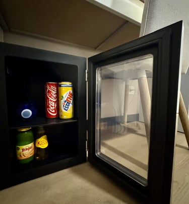 Tutte le camere sono sono climatizzate e dotate di WiFi, frigobar con bevande incluse, macchina da caffè con cialde incluse, un forno microonde e una TV da 55".